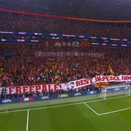 Εν τω μεταξύ, θα αντιμετωπίσουν κυρώσεις οι οπαδοί της Γαλατασαράι για τα φιλοπαλαιστινιακά μηνύματά τους; Στο άρθρο 16(2)(ε) των πειθαρχικών κανονισμών της, η UEFA ορίζει ότι οι σύλλογοι είναι υπεύθυνοι εάν οι οπαδοί τους χρησιμοποιούν «λέξεις, αντικείμενα ή οποιοδήποτε άλλο μέσο για να μεταφέρουν ένα προκλητικό μήνυμα που είναι ακατάλληλο για μια αθλητική εκδήλωση, ιδίως προκλητικά μηνύματα πολιτικής, ιδεολογικής, θρησκευτικής ή προσβλητικής φύσης».