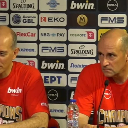 «Σήμερα η ομάδα έγραψε ιστορία. Βρεθήκαμε με την πλάτη στο τοίχο μετά το 1-0. Εκεί με τον Χρήστο Μπαφέ, τον Νίκο τον Λεπενιώτη και τον Γιώργο Σκινδήλια περάσαμε ατελείωτες ώρες στα τηλέφωνα, ψάχνοντας λύσεις. Βγάλαμε ομιλίες σε κλειστά αποδυτήρια και όχι σε ανοιχτά, για να κάνουμε διαφήμιση. Φυσικά αυτό δεν αρκούσε, γιατί ο Παναθηναϊκός είναι μεγάλος αντίπαλος με μεγάλους παίκτες και μεγάλη ιστορία. Αφιερώνουμε τον τίτλο σε όλο τον κόσμο μας. Είμαστε πολύ χαρούμενοι, είναι ο πιο κομβικός τίτλος στη θητεία μας στον Ολυμπιακό. Ήταν μεγάλες δυσκολίες και εντός και εκτός παρκέ. Τις ξέρετε. Με μια επίθεση που έγινε στην ομάδα. Στον προπονητή της προσωπικά, σε εμάς. Μείναμε όρθιοι. Είχαμε απόλυτη πίστη στην ομάδα. Φτάσαμε στο σημερινό επίτευγμα. Έναν σημαντικό τίτλο. Κόντρα σε μια ομάδα, με δικό της γήπεδο, με δικά της Μέσα Ενημέρωσης. Εμείς δεν έχουμε γήπεδο, ούτε δικά μας Μέσα. Βγήκαμε και τα είπαμε όλοι μόνοι μας, με προσωπικό κόστος. Κάποια στιγμή ίσως θα πρέπει να απαντήσουμε σε κάποια θέματα. Σήμερα είναι μέρα χαράς και μέρα θριάμβου. Θέλουμε να ευχαριστήσουμε προσωπικά τον κόουτς για όλα αυτά τα χρόνια και ειδικά για φέτος που άντεξε όλη αυτή την πίεση. Εμείς δεν είμαστε πρωταγωνιστές. Η ομάδα είναι. Εμείς θα βγούμε μπροστά να κάνουμε αυτό που πρέπει. Να πούμε πως αυτή η ομάδα είναι η πιο πετυχημένη στην ιστορία του Ολυμπιακού. Πέρσι χάσαμε ένα πρωτάθλημα στο σουτ, για το οποίο παιχνίδι μπορούμε να πούμε πολλά, αλλά δεν είναι ώρα. Έτσι είναι ο αθλητισμός, με νίκες και με ήττες. Ελπίζω το μέλλον να μας φέρει ακόμα μεγαλύτερες χαρές».