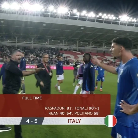 Ο Σάντρο Τονάλι όμως με γκολ στο 90+1' υπέγραψε τον επίλογο και το τελικό 4-5 για την ομάδα του Τζενάρο Γκατούζο, που πήρε την τρίτη της νίκη στα φετινά προκριματικά σε 4 αγώνες.