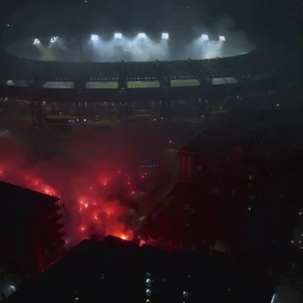 Έπειτα από το τελικό σφύριγμα στο ματς με την Κάλιαρι όλη η πόλη… βάφτηκε κόκκινη. Εκατοντάδες πυρσοί και πυροτεχνήματα εκτοξεύτηκαν από τους φίλους των παρτενοπέι στον αέρα και χάρισαν μία συγκλονιστική στιγμή