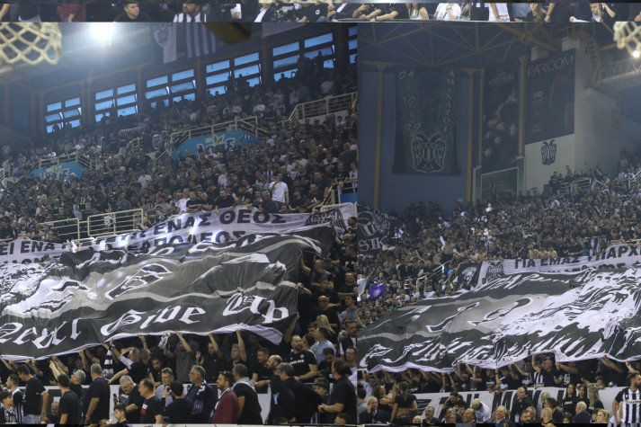Οι φίλαθλοι του «Δικέφαλου του Βορρά» δημιούργησαν εκπληκτική ατμόσφαιρα συνολικά. Λίγο πριν το τζάμπολ όμως, η παρουσία τους έγινε πιο αισθητή από ποτέ. Ειδικά τη στιγμή που πέταξαν χιλιάδες σερπαντίνες προς τον αγωνιστικό χώρο, όλα τα πλάνα έγιναν... λευκά και απολαυστικά.