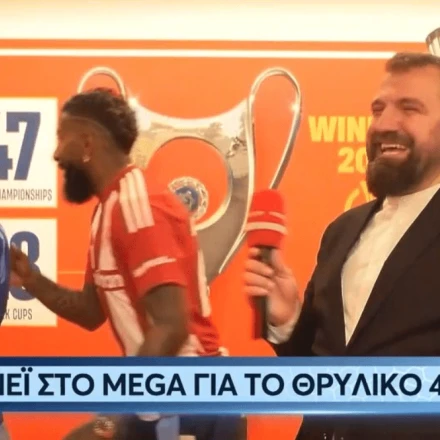 Ο Βραζιλιάνος μπακ του Ολυμπιακού αφού μίλησε για το 48ο πρωτάθλημα των Πειραιωτών και λίγο πριν αποχωρίσει για τα αποδυτήρια για να συνεχίσει να πανηγυρίζει, είμαι στα ελληνικά πως είναι κουρασμένος.