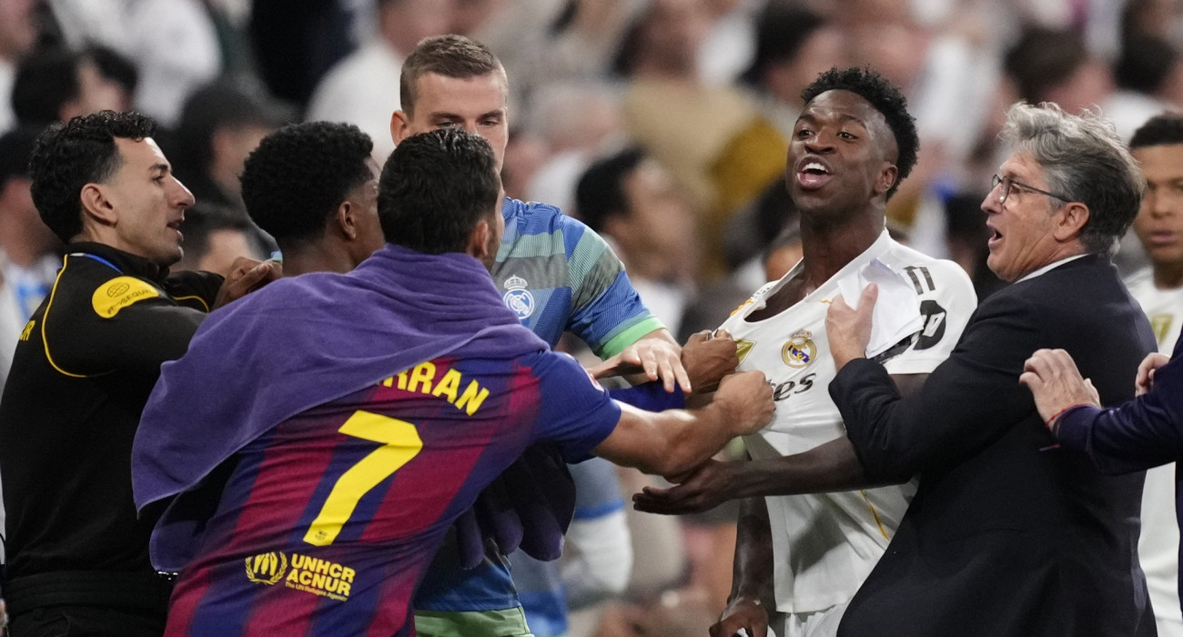 Οι ψυχραιμότεροι, προσπαθούσαν να αποκλιμακώσουν την ένταση για να αποφευχθεί το οποιοδήποτε ευτράπελο ακόμα. Όλο το τεχνικό επιτελείο της Ρεάλ Μαδρίτης, κρατούσε τον Βινίσιους, για να μην ορμήσει επάνω στον Γιαμάλ, με τον Φρένκι Ντε Γιονγκ και δυο εκ των βοηθών του Χάνσι Φλικ να τον «φυγαδεύουν» προς τα αποδυτήρια. Ο Ραφίνια που δε βρισκόταν στην αποστολή λόγω τραυματισμού, μπήκε επίσης στη μέση έξαλλος και έσπρωξε τον «Βίνι».