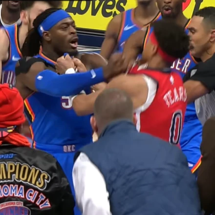 Οι Οκλαχόμα Σίτι Θάντερ μετέτρεψαν έναν ακόμη αγώνα σε περίπατο, τα ξημερώματα της Τετάρτης (28/1). Κέρδισαν τους Πέλικανς με σκορ 104-95, αλλά η διεξαγωγή της αναμέτρησης... απειλήθηκε, λόγω ενός καβγά που ξέσπασε στη ρακέτα των περσινών πρωταθλητών.