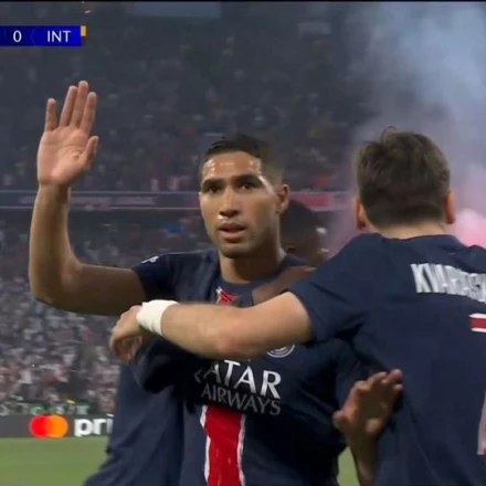 Ο Βιτίνια βρήκε τον Ντουέ μέσα στην περιοχή με εξαιρετική κάθετη πάσα, ο νεαρός Γάλλος έδωσε με τη μία στον Χακίμι, ο οποίος πλάσαρε εύστοχα απ' το ύψος του πέναλτι, ανοίγοντας το σκορ για την Παρί.