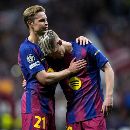 O Φράνκι Ντε Γιόνγκ με τον Ντάνι Όλμο μετά τον αποκλεισμό της Μπαρτσελόνα / Πηγή: Imago
