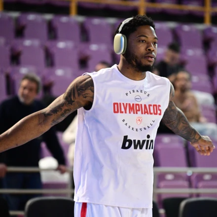 Ο Ταϊρίκ Τζόουνς στο ζέσταμα στον τελικό με τον Παναθηναϊκό / πηγή:eurokinissi