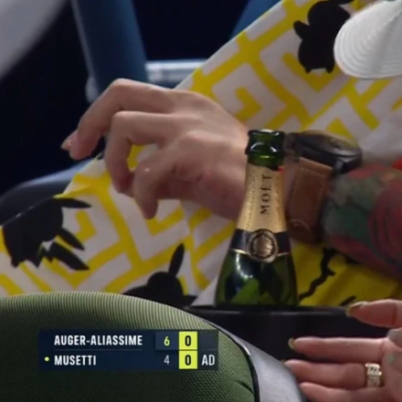 Ο Ιταλός ηττήθηκε με 6-4 και 6-2 games, όμως δεν ήταν αυτό που τράβηξε τα βλέμματα στο court. Την προσοχή κέρδισε ένας θεατής του τουρνουά που έπινε... σαμπάνια. Συγκεκριμένα ο φίλαθλος αυτός, είχε μαζί του ένα μικρό μπουκάλι σαμπάνιας Moet, το οποίο έπινε κατά τη διάρκεια του αγώνα.