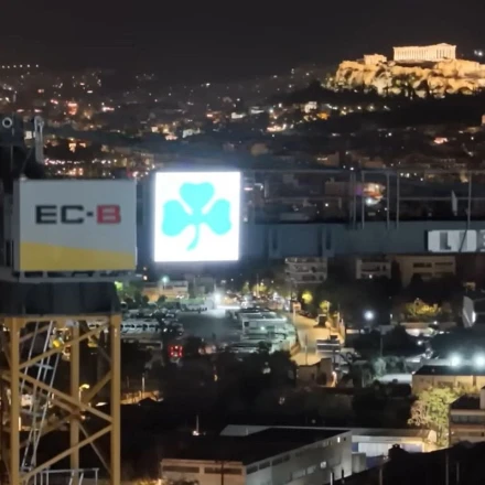 Στα εντυπωσιακά νυχτερινά πλάνα, με φόντο την Ακρόπολη, βλέπουμε ένα έργο που τιμά την ιστορία ενός μεγάλου αθλητικού συλλόγου και ταυτόχρονα αλλάζει το μέλλον μιας ολόκληρης περιοχής.