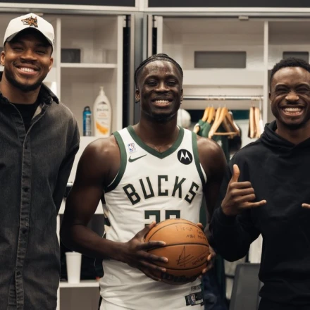 Γιάννης, Άλεξ και Θανάσης Αντετοκούνμπο ποζάρουν χαρούμενοι/Πηγή: x.com@Bucks