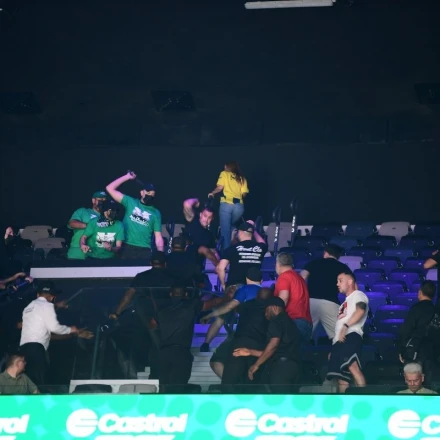 Πετροπόλεμος και επεισόδια στις εξέδρες της Etihad Arena αυτή τη στιγμή.