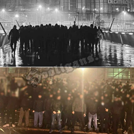 Οπαδοί των γηπεδούχων, συγκρούστηκαν με φίλους του «Δικεφάλου του Βορρά», με σχετικό βίντεο να δείχνει τις μάχες σώμα με σώμα, μεταξύ δεκάδων οπαδών.