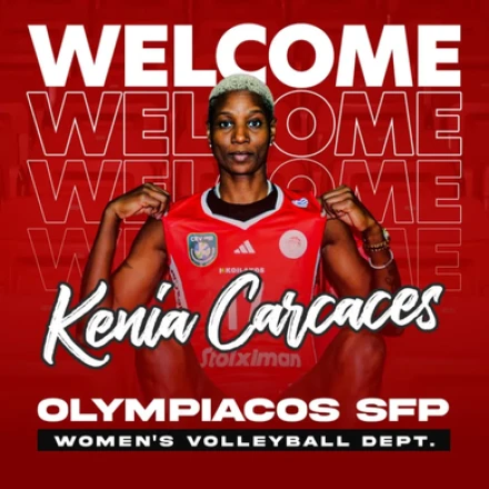 «Ο ΟΛΥΜΠΙΑΚΟΣ Σ.Φ.Π. ανακοινώνει την έναρξη της συνεργασίας του με την Κένια Καρκάσες. Η Κουβανή ακραία (ημ. γέννησης 22/1/1986, 1,90μ.) υπέγραψε το νέο της συμβόλαιο και εντάσσεται στο ρόστερ της ομάδας βόλεϊ Γυναικών του συλλόγου.