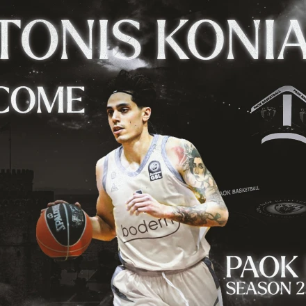 «Η ΚΑΕ ΠΑΟΚ mateco ανακοινώνει τη συμφωνία με τον Αντώνη Κόνιαρη, ο οποίος επιστρέφει στην ομάδα μας για να αγωνιστεί και πάλι με την ασπρόμαυρη φανέλα τη σεζόν 2025-26.