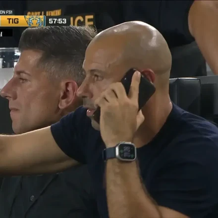 Ο προπονητής της Ίντερ Μαϊάμι, Χαβιέρ Μασεράνο, ο οποίος αποβλήθηκε λίγο πριν το ημίχρονο στον προημιτελικό αγώνα της ομάδας του Λιονέλ Μέσι εναντίον της Τίγκρες του Μεξικού για το Leagues Cup, εθεάθη αργότερα να δίνει οδηγίες στον βοηθό προπονητή του από τις κερκίδες.