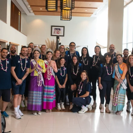 Συγκεκριμένα οι εκπρόσωποι της τοπικής οργανωτικής επιτροπής μαζί με εθελοντές προσέφεραν αναμνηστικά σύμβολα της πόλης και παραδοσιακά άνθη, αποδεικνύοντας το κλίμα φιλοξενίας που κατακλύζει την κουλτούρα της Ταϊλάνδης.