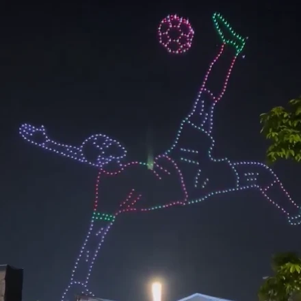 Το πρόσφατο ψαλιδάκι του Αγιούμπ Ελ Κααμπί απέναντι στη Ζάμπια φαίνεται πως ενέπνευσε τους Μαροκινούς και εκτός γηπέδων. Αυτή τη φορά με έναν άκρως πρωτότυπο και εντυπωσιακό τρόπο. Σε ένα μοναδικό drone show, δεκάδες drones σχημάτισαν στον ουρανό κοντά στο «Anfa Park», πάρκο στην Καζαμπλάνκα, τη χαρακτηριστική φιγούρα του επιθετικού του Ολυμπιακού τη στιγμή της εκτέλεσης, αποτυπώνοντας με ακρίβεια το γκολ που άφησε άφωνο το ποδοσφαιρικό κοινό.