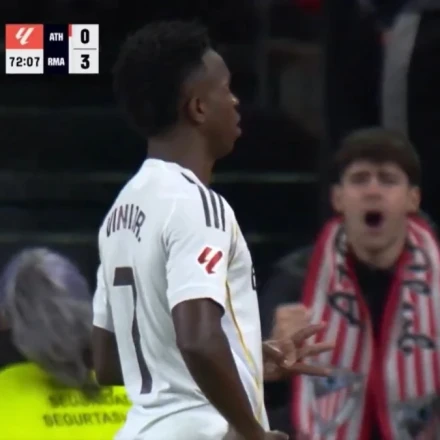 Ωστόσο δεν ήταν όλα... ρόδινα κατά την διάρκεια του αγώνα, με τον Βινίσιους να είναι ο αρνητικός πρωταγωνιστής σε ακόμα ένα περιστατικό με την κερκίδα. Ο Βραζιλιάνος, ο όποιος δεν εντυπωσίασε με την εμφάνισή του στην χώρα των Βάσκων, προκάλεσε ξανά με την συμπεριφορά του, δημιουργώντας εκνευρισμό τόσο στο γήπεδο όσο και στα Μέσα Κοινωνικής Δικτύωσης.