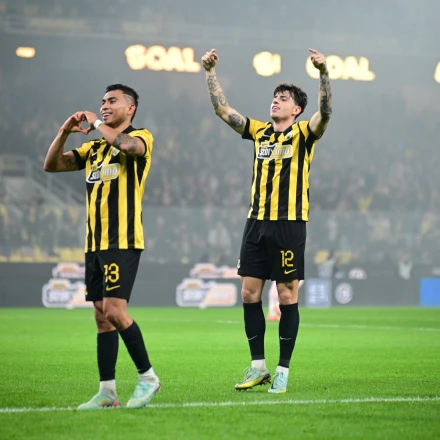 Ορμπελίν Πινέδα και Λάζαρος Ρότα πανηγυρίζουν για την ΑΕΚ / Πηγή: Eurokinissi