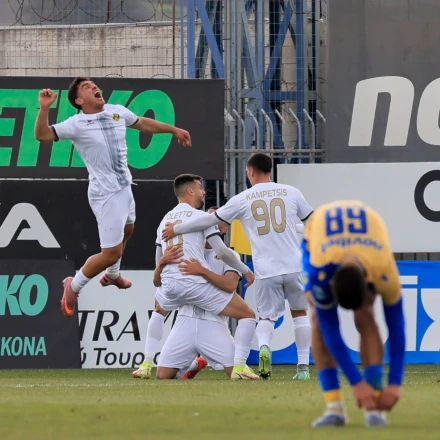 Οι ποδοσφαιριστές της Αναγέννησης Καρδίτσας πανηγυρίζουν / Πηγή: eurokinissi