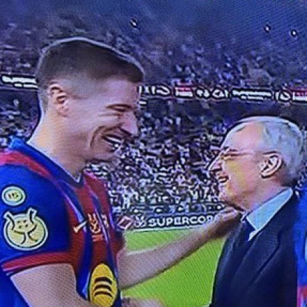 Παρά την πικρία του, ο Φλορεντίνο Πέρεθ βρέθηκε κανονικά στην απονομή των μεταλλίων, με τον ισχυρό άνδρα των Μαδριλένων να στέκεται δίπλα σε αυτόν των «μπλαουγκράνα», Ζοάν Λαπόρτα, ενώ συγχαίρει τον κάθε παίκτη των Καταλανών, έχοντας όμως μια... ιδιαίτερη αντίδραση με έναν εξ αυτών.