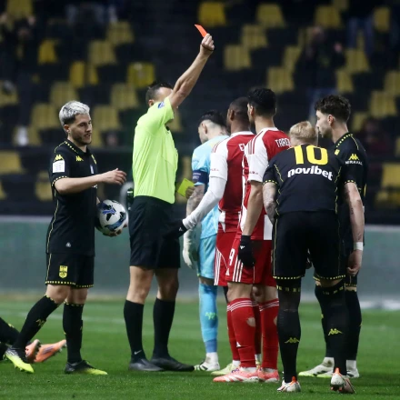 Με 10 ποδοσφαιριστές έμεινε ο Ολυμπιακός στο 51' του εκτός έδρας αγώνα με τον Άρη για τη 14η στροφή της Stoiximan Super League.