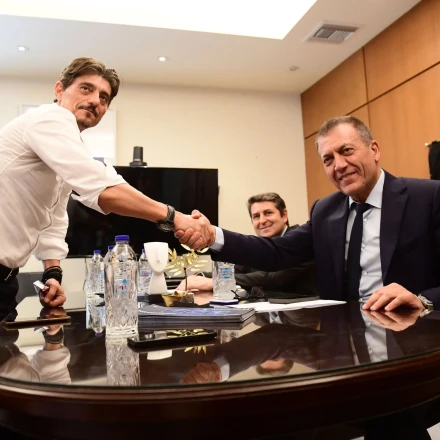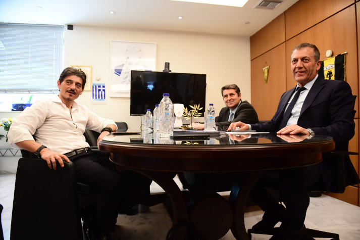 Λίγο αργότερα βρέθηκε στα γραφεία του Γιάννη Βρούτση, έχοντας θερμή χειραψία με τον Αναπληρωτή Υπουργό Αθλητισμού, με τους δύο άνδρες να ξεκινούν τη συζήτησή τους με χαμόγελα και διάθεση να τα πουν σε πολύ καλό κλίμα.