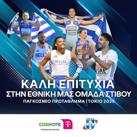 Στο πλευρό της ελληνικής αποστολής στο Παγκόσμιο Πρωτάθλημα στίβου, που διεξάγεται στο Τόκιο (13-21 Σεπτεμβρίου), βρίσκεται η COSMOTE TELEKOM, ως Μεγάλος Χορηγός του Συνδέσμου Ελληνικών Γυμναστικών & Αθλητικών Σωματείων (ΣΕΓΑΣ) και της Εθνικής Ομάδας Στίβου. Έχοντας πολύχρονη και δυναμική παρουσία στον χώρο του αθλητισμού, η COSMOTE TELEKOM στέκεται αρωγός στις προσπάθειες των Ελλήνων αθλητών να επιτύχουν τους στόχους τους στη μεγάλη αυτή διοργάνωση.