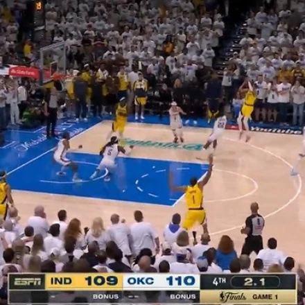 Αυτό το φινάλε ήταν επικό και για ακόμα μια φορά είχε την υπογραφή του Ταϊρίς Χαλιμπάρτον. Ο ηγέτης των Ιντιάνα Πέισερς πήρε τ' όπλο του για ακόμα μια φορά στη σεζόν και χάρισε ακόμα μια clutch στιγμή με το καλάθι νίκης που πέτυχε απέναντι στους Θάντερ, στο Game 1 των τελικών του ΝΒΑ.