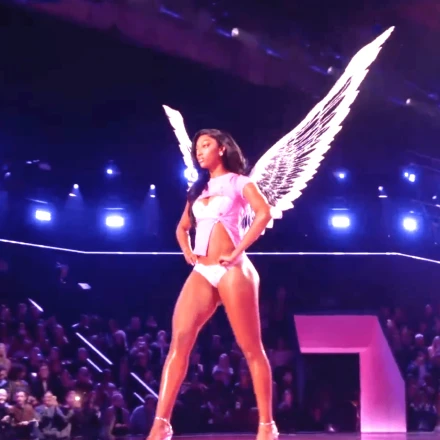 Η Άντζελ Ρις, η οποία προσέλαβε έναν ειδικό στη μόδα για να «τελειοποιήσει το περπάτημά της», κέρδισε τα «φτερά αγγέλου» της και έγινε μία από τις επιλεγμένες που φόρεσαν το «Wings Reveal».
