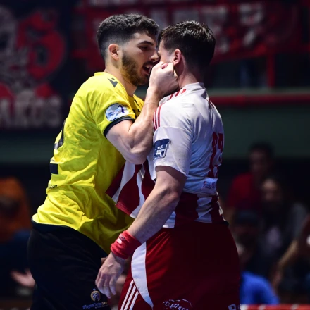 Ένταση στον δεύτερο τελικό της Handball Premier ανάμεσα σε παίκτες του Ολυμπιακού και της ΑΕΚ στο κλειστό της Ηλιούπολης.