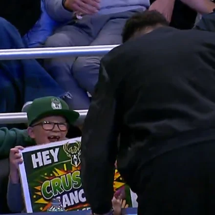 Ο Έλληνας σούπερ σταρ, βλέποντας τον μικρό Μέισον να τον περιμένει, τον πλησίασε και αντάλλαξαν ένα «high-five», σε μια κίνηση που σίγουρα θα θυμάται ο μικρός φίλος των «ελαφιών».