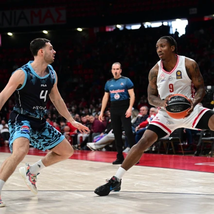 Στο ντεμπούτο του Μόντε Μόρις και με τον Κολοσσό Ρόδου να σκοράρει 41 πόντους, ο Ολυμπιακός επικράτησε του Κολοσσού Ρόδου στο Στάδιο Ειρήνης και Φιλίας.