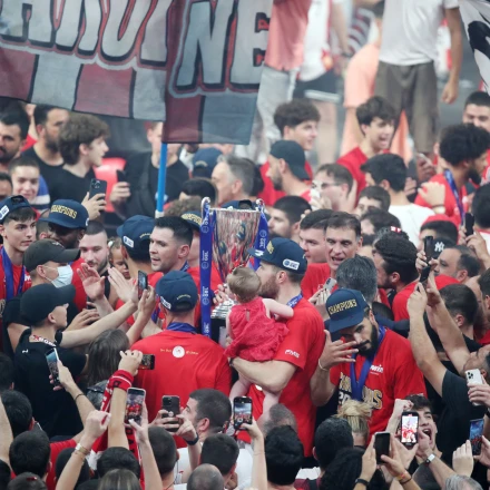 Οι φίλοι του Ολυμπιακού, πανηγύρισαν δεόντως την κατάκτηση του πρωταθλήματος, γεμίζοντας ασφυκτικά το παρκέ του ΣΕΦ.