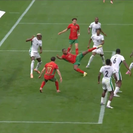 Στον ημιτελικό με την Νιγηρία, ο Ελ Κααμπί του Ολυμπιακού αποπειράθηκε να σκοράρει με το... συνήθη εντυπωσιακό του τρόπο. Δεν τα κατάφερε!