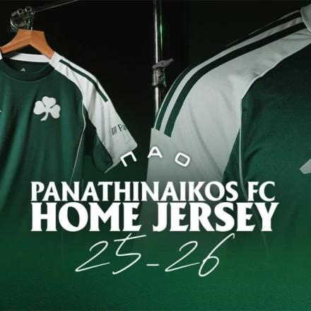 «Η νέα εντός έδρας εμφάνιση του Παναθηναϊκού για τη σεζόν 2025/26, σχεδιασμένη από την Adidas, συνδυάζει την παράδοση με τη σύγχρονη αισθητική. Το κλασικό πράσινο χρώμα κυριαρχεί, με διακριτικές λευκές λεπτομέρειες που τιμούν τη διαχρονική ταυτότητα του Τριφυλλιού.