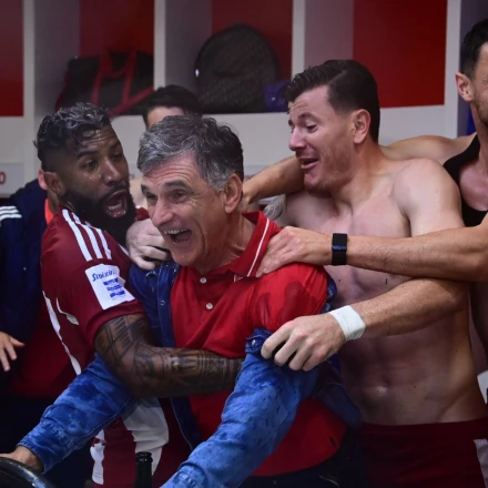 Το κλίμα στα αποδυτήρια των ερυθρολεύκων είναι πανηγυρικό με τους παίκτες του Ολυμπιακού να αποθεώνουν τον Ισπανό προπονητή!