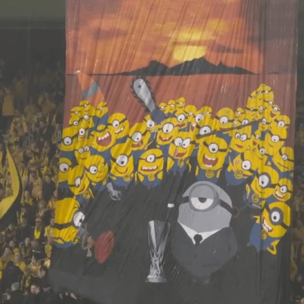 Αυτή τη φορά, οι φίλοι του συλλόγου εμφάνισαν ένα πανό που απεικόνιζε τα minions από τη σειρά ταινιών Despicable Me με την κούπα της δεύτερης τη τάξει διασυλλογικής διοργάνωσης της UEFA.