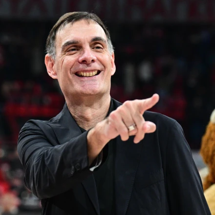 Ο Γιώργος Μπαρτζώκας χαμογελάει μετά τη νίκη του Ολυμπιακού κόντρα στη Βίρτους/Πηγή΅: Eurokinissi