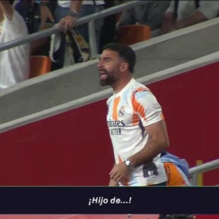 Οι κάμερες του «Movistar+» κατέγραψαν τον εκνευρισμό του Ντάνι Καρβαχάλ, καθώς καθόταν πίσω από τον πάγκο της Ρεάλ Μαδρίτης με τους υπόλοιπους συμπαίκτες του, με τις αποφάσεις του διαιτητή.