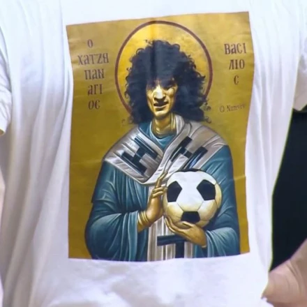 Ένας φίλος της ομάδας της Θεσσαλονίκης εμφανίστηκε στο Ιβανώφειο με ένα ιδίαιτερο μπλουζάκι με τη μορφή του Βασίλη Χατζηπαναγή ως Άγιου. Φυσικά, η επιλογή του κέντρισε όλα τα βλέμματα.