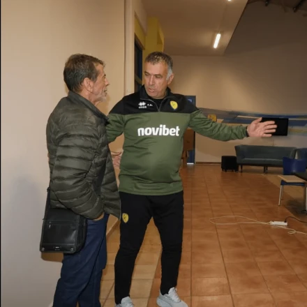 Πριν τη προπόνηση της Πέμπτης (9/10), ο νέος προπονητής των «καναρινιών» υποδέχτηκε τον Γιάννη Πετράκη, ο οποίος ήθελε να αποχαιρετήσει τους ποδοσφαιριστές αποχωρώντας από την τεχνική ηγεσία του Παναιτωλικού από δύο χρόνια.