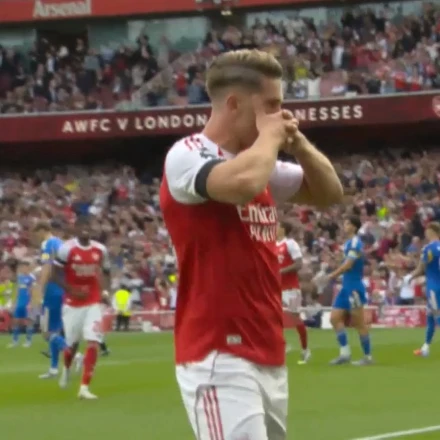 Πέρασε υπέροχα την μπάλα στον Σάκα ο Τίμπερ και ο Σακά έστειλε την μπάλα στην απέναντι γωνία, με εντυπωσιακό τελείωμα, με το δεξί του πόδι.