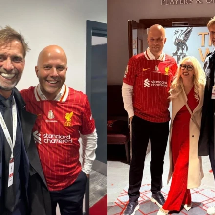 Μετά την απονομή του τροπαίου στο γήπεδο, ο Κλοπ κατευθύνθηκε προς τα αποδυτήρια του Άνφιλντ, όπου ο Σλοτ και οι παίκτες του συγκεντρώθηκαν για να συνεχίσουν να πανηγυρίζουν. Αυτό οδήγησε σε μια ακόμη συνάντηση με τον διάδοχό του, την οποία ο Κλοπ μοιράστηκε δεόντως με τους 4,6 εκατομμύρια ακολούθους του στο Instagram.