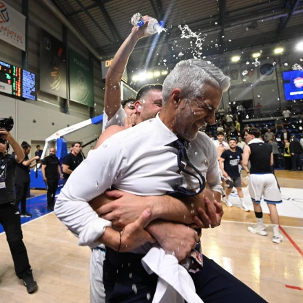 Ο κόουτς Ζιάγκος ξεκίνησε την προσπάθειά του να μεταφέρει τα συναισθήματα λέγοντας για αρχή πως είναι «απερίγραπτα». Και κάποια στιγμή δέχθηκε την επίθεση με νερά από τους παίκτες του, για το καθιερωμένο σε τέτοιες περιπτώσεις μπουγέλο.