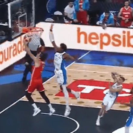 Ο Γιάννης Αντετοκούνμπο ξεκίνησε ορεξάτος τον αγώνα κόντρα στην Τουρκία, με ένα απίθανο poster dunk... στο πρόσωπο του Αλπερέν Σενγκούν.
