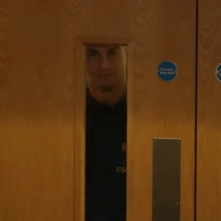 Ο Κριστιάνο Ρονάλντο, αντί να περάσει κανονικά στην αίθουσα, όπου περίμεναν οι δημοσιογράφοι, στάθηκε πίσω από την πόρτα και για λίγα δευτερόλεπτα τους... κρυφοκοίταζε μέσα από ένα μικρό παραθυράκι, προκαλώντας τις ξεκαρδιστικές αντιδράσεις των δημοσιογράφων.