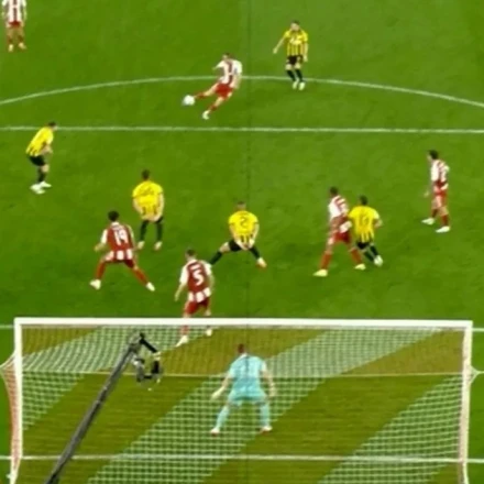 Δευτερόλεπτα πριν τη λήξη της αναμέτρησης, στο 98ο λεπτό, ο Ολυμπιακός κατάφερε να σκοράρει απέναντι στην Ένωση με εκπληκτικό κοντρόλ και σουτ του Γιαζίτσι από τα όρια της μεγάλης περιοχής.