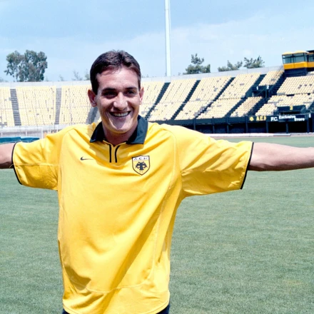 Ο «Σερίφης» της ΑΕΚ, κατά την παρουσίασή του στο Νίκος Γκούμας, το 2001 / Πηγή: Intime