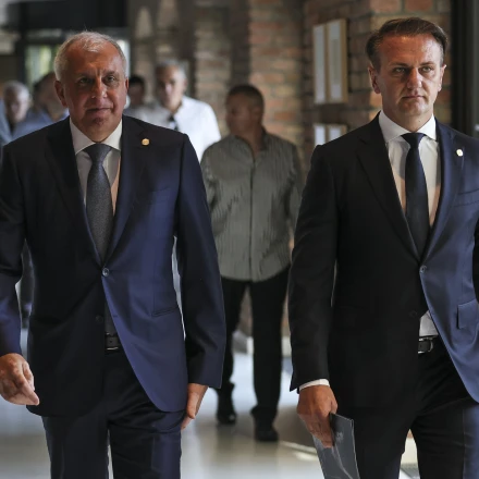 Ο Ζέλικο Ομπράντοβιτς περπατάει με τον Οστόγια Μιχαΐλοβιτς, Πηγή:Srdjan Stevanovic/Getty Images/Ideal Images